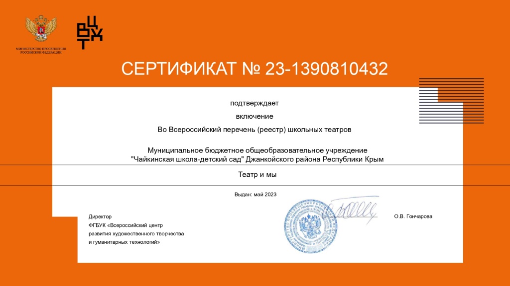 Муниципальное бюджетное общеобразовательное учреждение Чайкинская школа-детский сад Джанкойского района Республики Крым